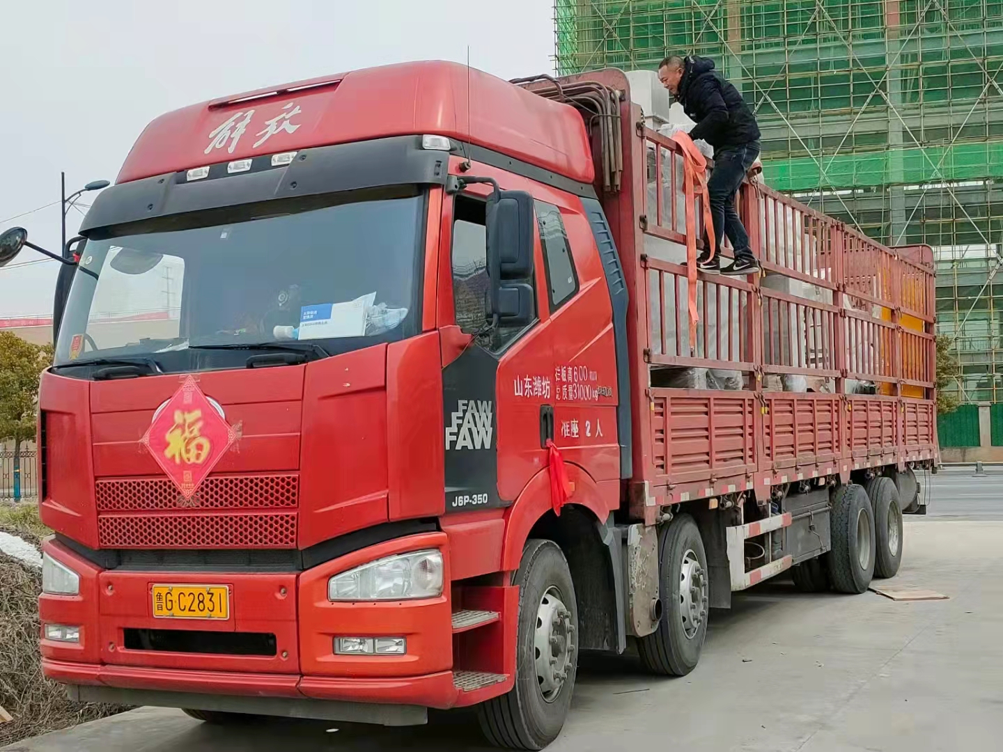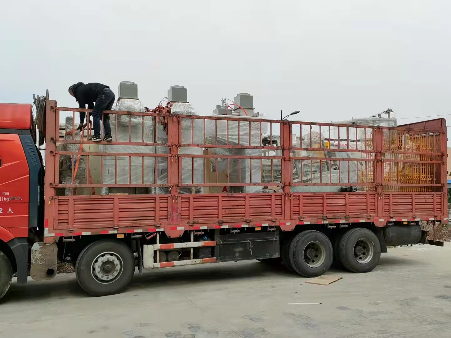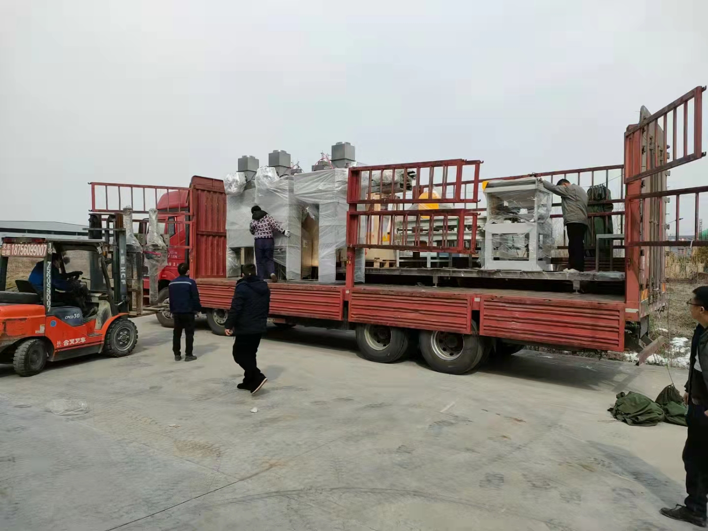 我司山東粉料自動(dòng)包裝碼垛生產(chǎn)線(xiàn)發(fā)貨現場(chǎng)