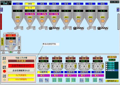 1.自動(dòng)化程度高:整個(gè)配料過(guò)程全部自動(dòng)完成,提高效率,節省人工;